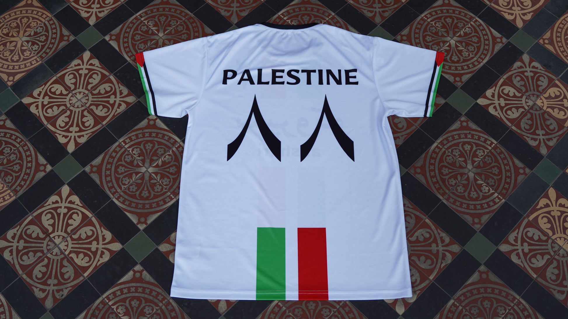 Bold, oversized streetwear jersey repping Palestine with pride. Arabic lettering, flag colours, and no compromise.